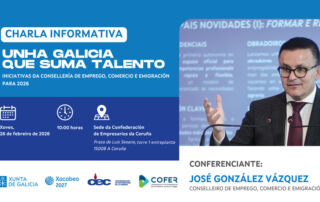O vindeiro xoves 26 de febreiro ás 10:00 horas, a sede da Confederación de Empresarios de La Coruña acollerá a xornada informativa “Unha Galicia que suma talento”, que contará coa intervención de José González Vázquez, [...]
