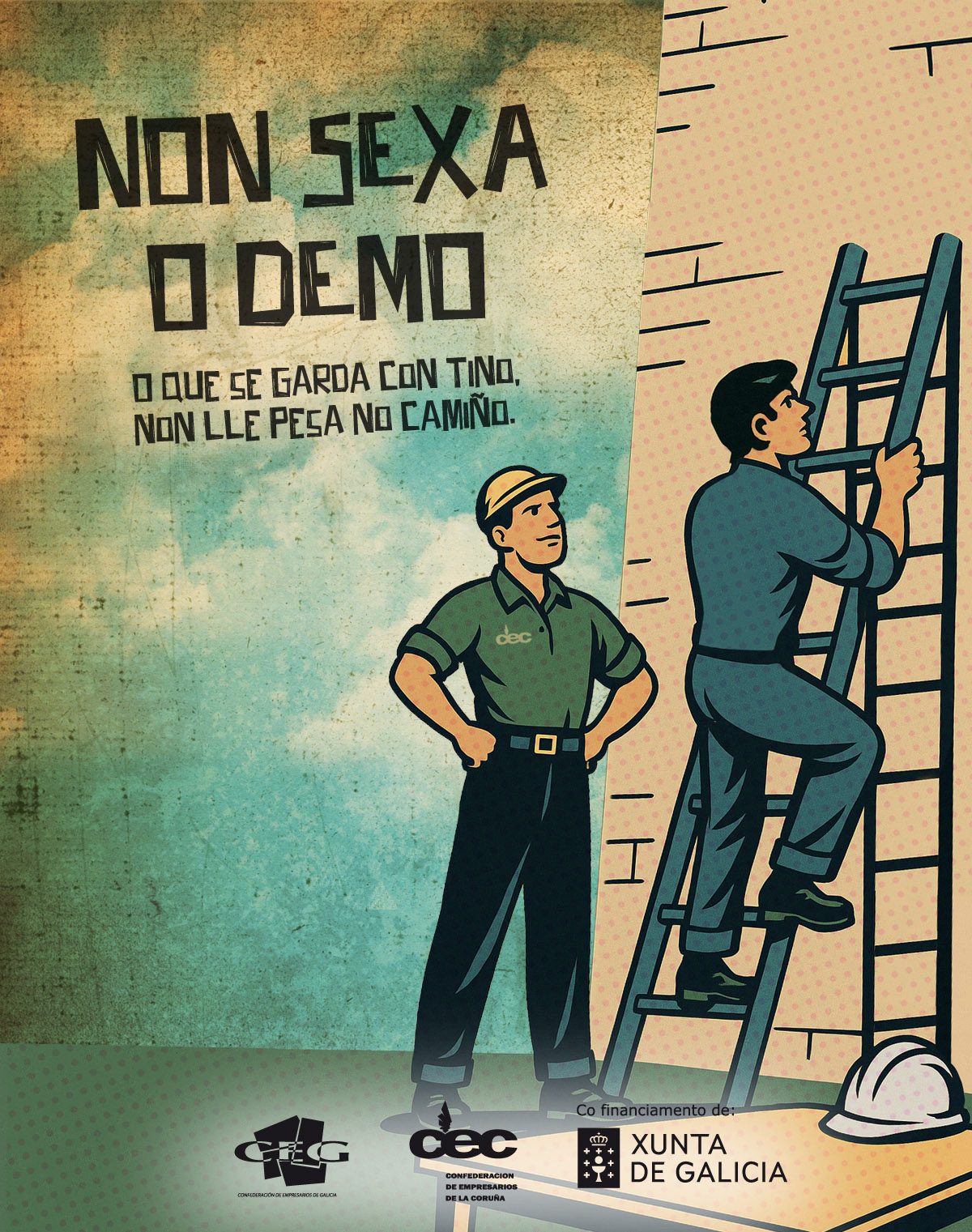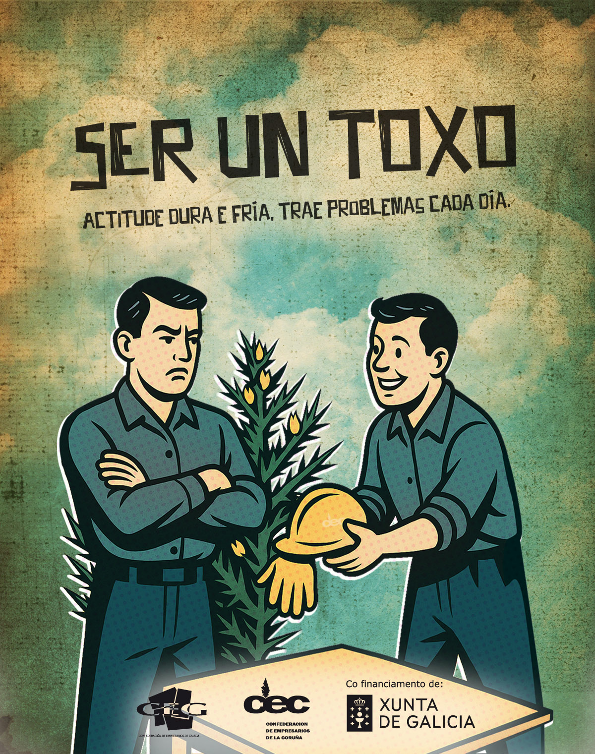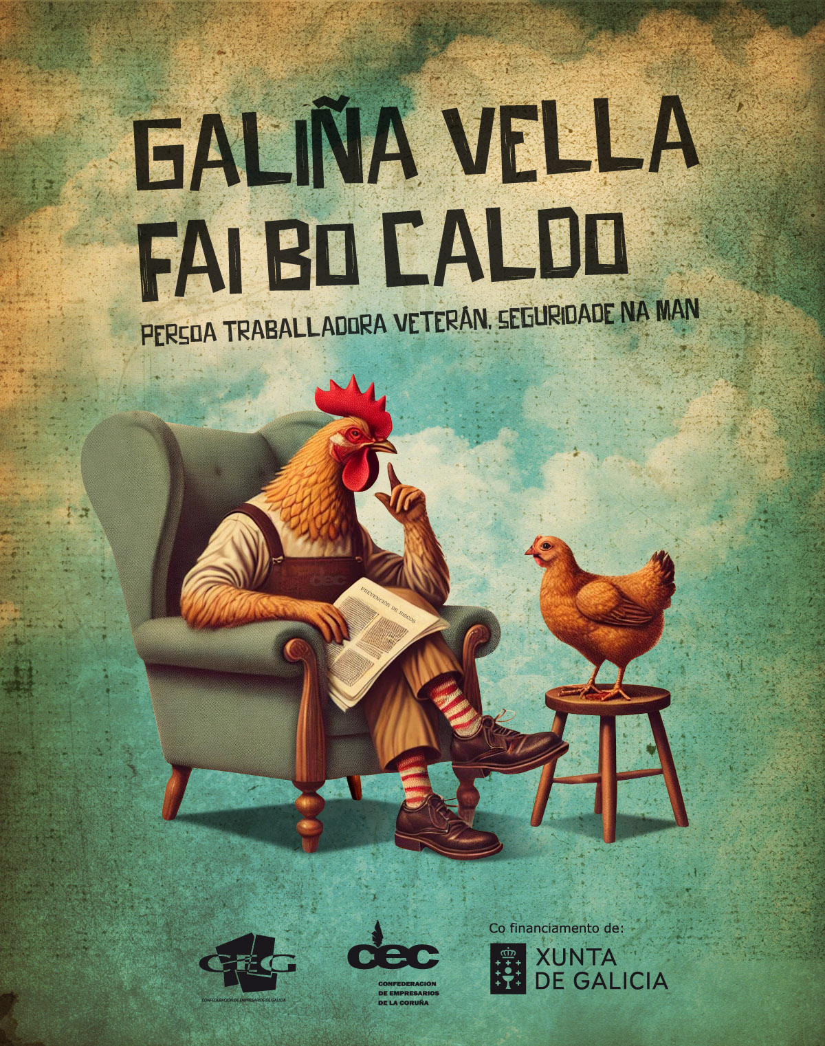 Trátase dunha colección de 9 carteis, vídeos e audios nos que mesturamos a xestión actual da PRL con frases retranqueiras galegas. O obxectivo é facer a información e sensibilización sobre seguridade e saúde no traballo máis próxima, amena e memorable.